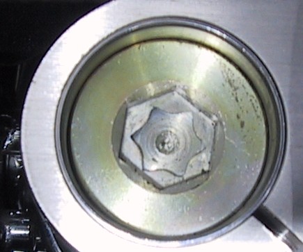 6. Now you can see the brass colored plugs with the 17mm Allen heads.