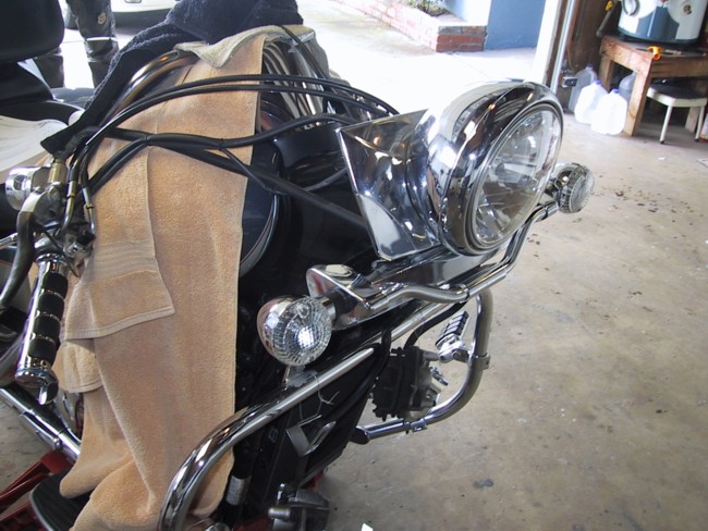 Lots of towels (to cover your tank and headlight)